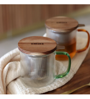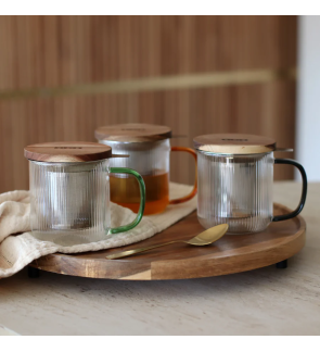 Tisanière KARL jade en verre borosilicate 30cl avec couvercle en bois d'acacias.