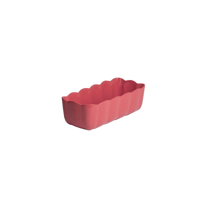 Deze keramische bakvorm heeft een roze kleur en een sierlijke, gegolfde rand.