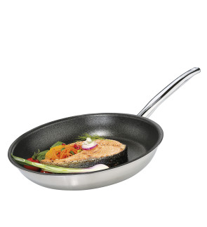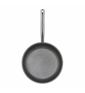 Gegarandeerd TEFLON-VRIJE (PFOA) antiaanbaklaag met zeer krasbestendige en hittebestendige Zwitserse bergkristaldeeltjes, 5-laags meerlaags materiaal met inductie-compatibele roestvrijstalen buitenlaag.